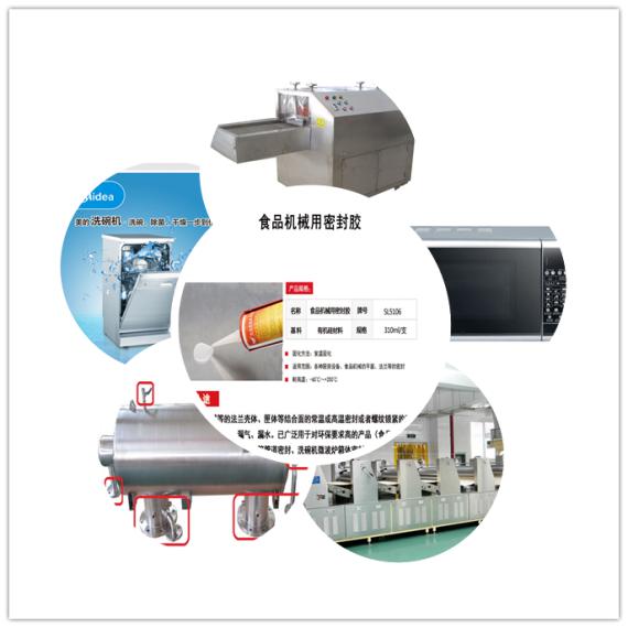 株洲世林膠業(yè)生產(chǎn)的SL5106食品級耐高溫密封膠,是一種單組份食品機(jī)械用密封墊,可以用于各種食品機(jī)械的平面和法蘭等的密封,它具有優(yōu)良的密封性,長期耐溫可以達(dá)到250度,短時(shí)可達(dá)+300℃。用在產(chǎn)品的間隙處,完全解決了耐高溫,防水,防塵,耐候性強(qiáng),可拆卸等問題。美的洗碗機(jī)上也是用的這款膠水做密封。